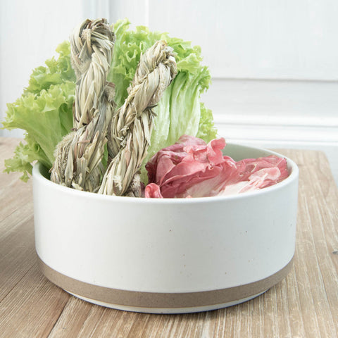 Schlicht, modern, legère - das ist unser Napf Campo! In den aktuellen Trendfarben weiß, schwarz und salbeigrün gehalten, überzeugt er durch seinen natürlichen Look und fügt sich wunderbar in jedes Kaninchengehege.
