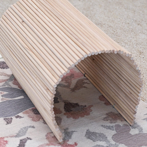 Flexibler Holztunnel aus Naturmaterialien. Das spezielle Design gibt es exklusiv bei grünhopper und bietet viele Aufstellmöglichkeiten.