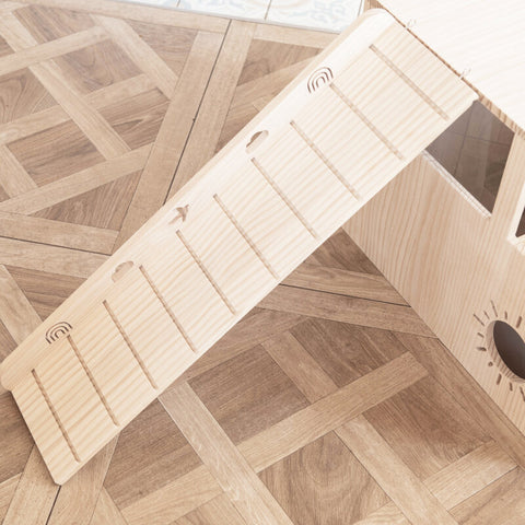 Diese verspielte Rampe könnt ihr überall integrieren. Einfach Häuser verbinden oder Aufgänge gestalten. Unser Hopplwerk Rampe hat wunderschöne Ausschnitte im Wolken-, Regenbogen- und Schwalbendesign.